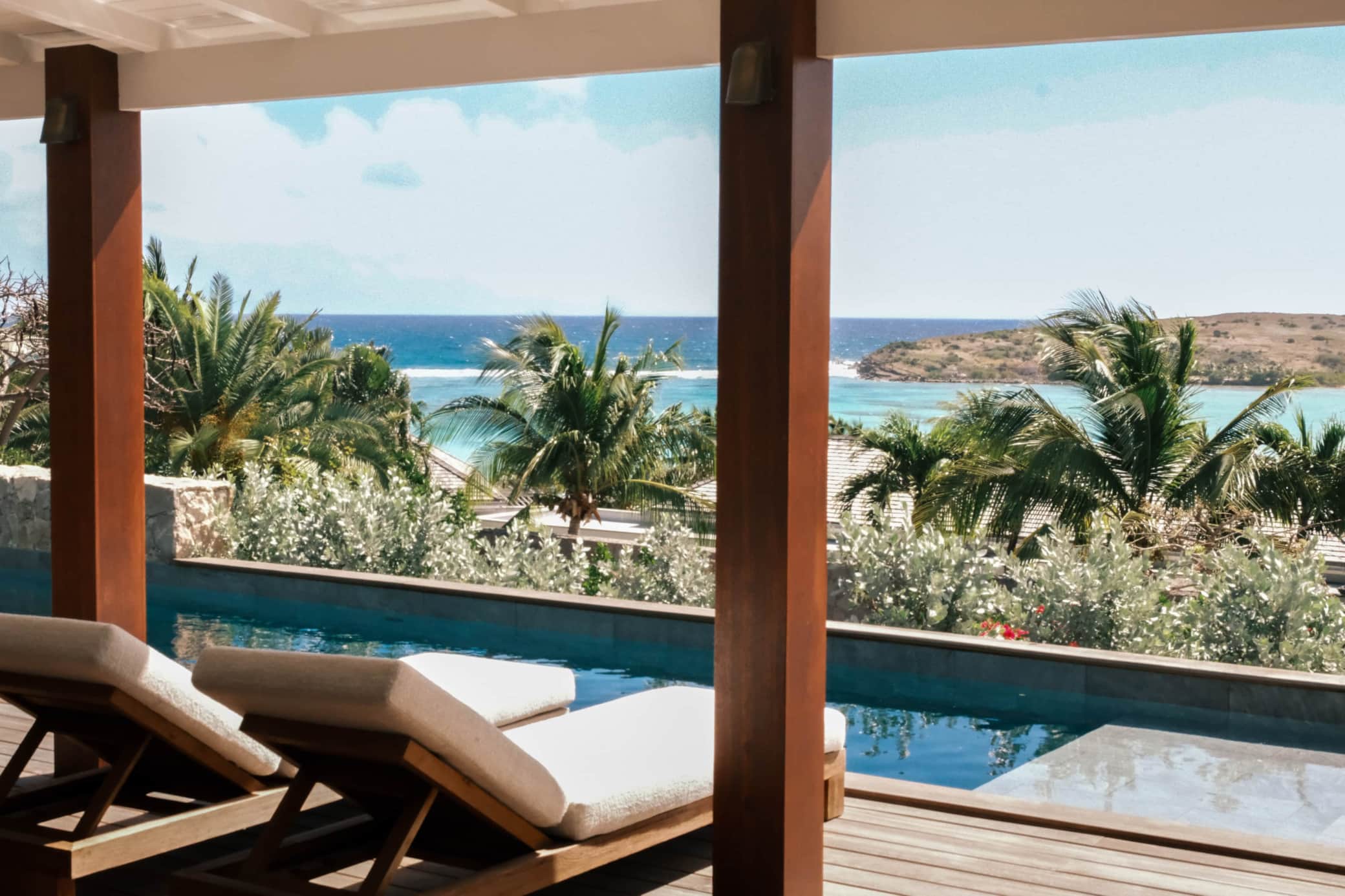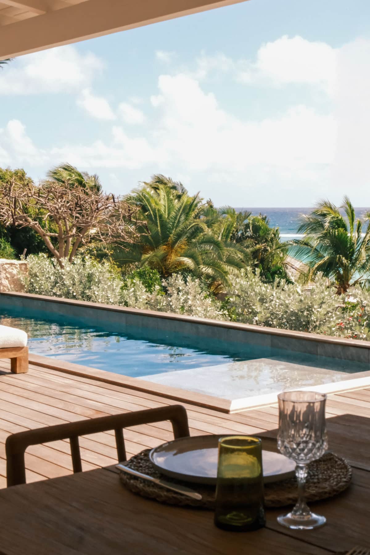 l’autre donne accès à une grande terrasse avec vue imprenable sur le lagon de Grand Cul-de-Sac.